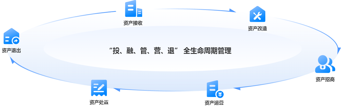 从资产接收、改造升级、精准招商、专业运营、合规处置与资本退出,串联 “投、融、管、营、退” 全链路。
